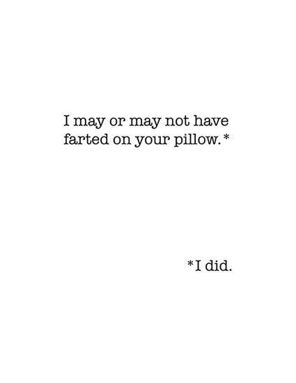 I may or may not have farted on your pillow.* *I did.