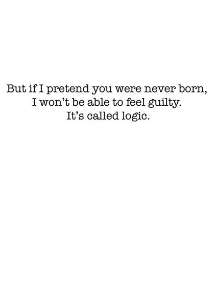 But if I pretend you were never born, I won't be able to feel guilty. It's called logic.