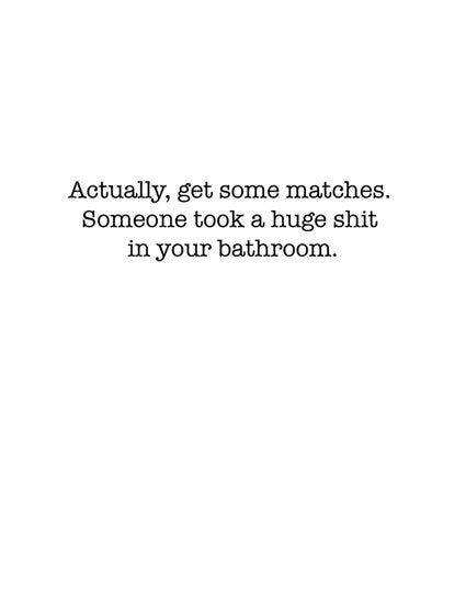 Actually, get some matches. Someone took a huge shit in your bathroom.