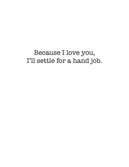 Because I love you, I'll settle for a hand job.